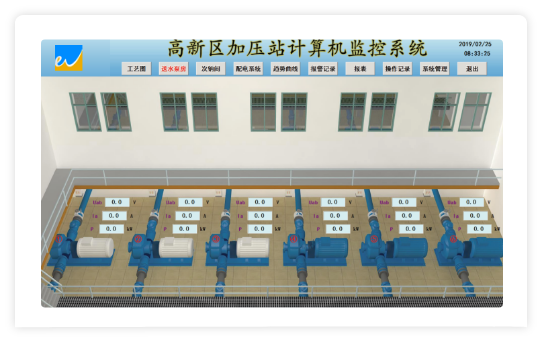 泵站遠程監控系統適用于城市供水系統中加壓泵站的遠程監控及管理。泵站管理人員在監控中心即可遠程監測泵站水池水位或進站壓力、加壓泵組工作狀態、出站流量、出站壓力等;可遠程控制、自動控制加壓泵組的啟停;光纖通信時,可圖像監視站內全景及重要工位,實現泵站無人值守。